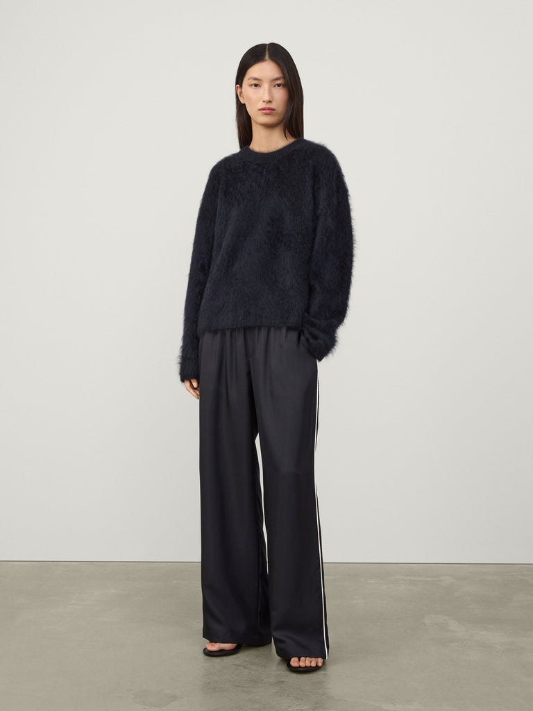 An easy layering piece, the Natalia sweater is knitted in our signature brushed cashmere which feels cloud-like to the touch. The relaxed, enveloping silhouette is designed with a ribbed crew neck, dropped shoulders and extended sleeves, and complete with slim ribbed trims at the cuffs and hem.