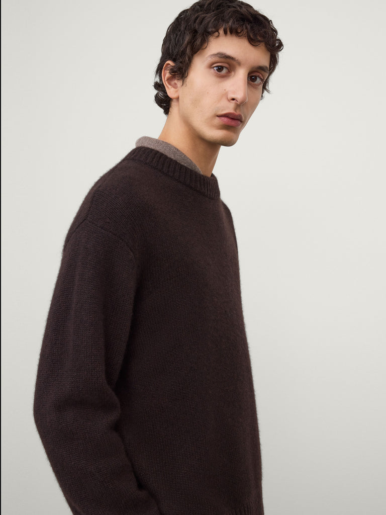 A signature crewneck, the Kristian sweater is crafted in rich, heavy knit cashmere for warmth and structure. The straight silhouette is punctuated by a chunky ribbed neckline, dropped shoulders, full-length sleeves and ribbed trims as a subtle design detail.
