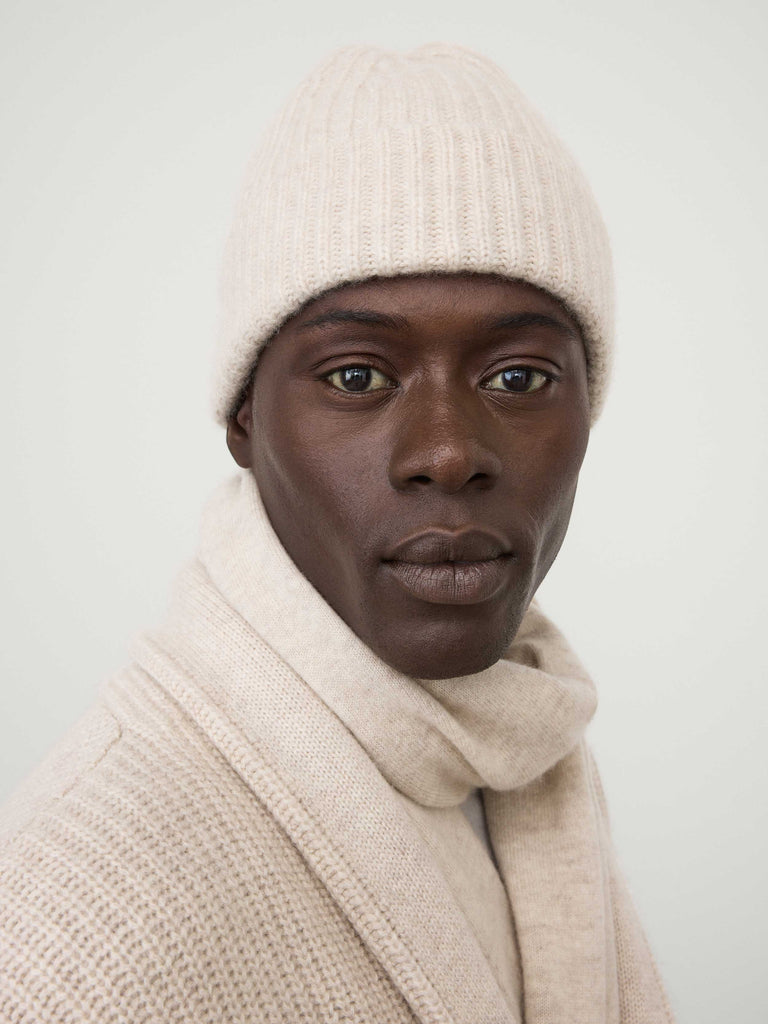 A trusted winter warmer, the Menton hat is crafted in ribbed, heavy knit cashmere for sumptuous warmth. The regular fit, beanie silhouette is complete with a brim that is folded at the front.