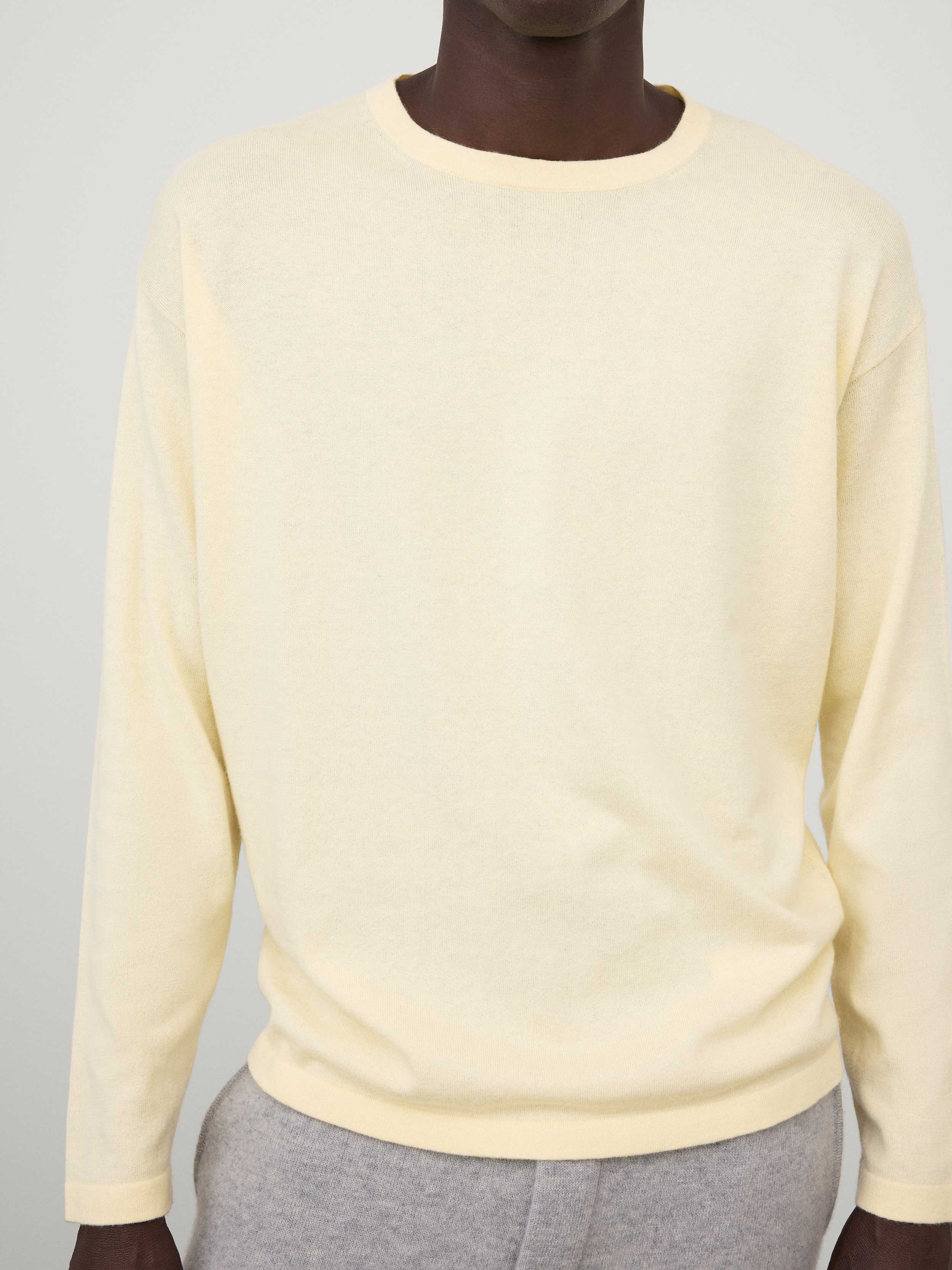 A longsleeve T-shirt, the Theodore sweater is expertly knitted in our jersey-inspired cotton cashmere hybrid. The regular fit, clean frame silhouette is complete with a crew neck, full-length sleeves and a tubular hem.