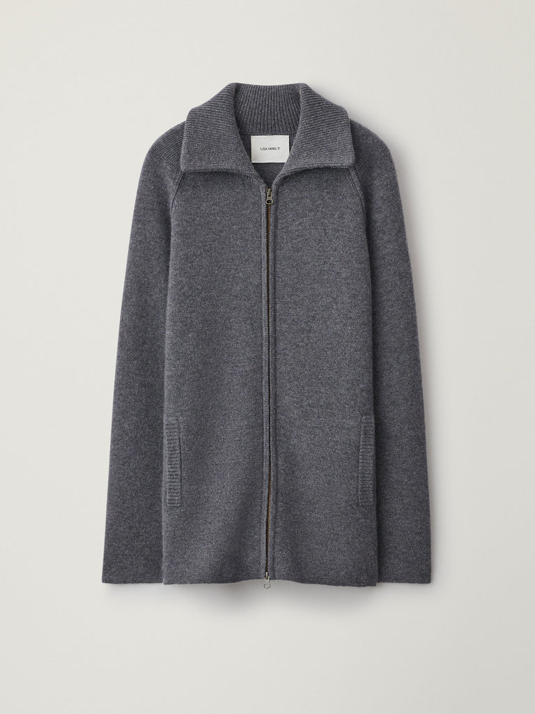 A sumptuous new piece, the Gardenia zip cardigan is crafted in structured double face cashmere to generous proportions. The regular fit, cocooning silhouette features an enlarged collar, raglan shoulders, a two-way zip fastening, full-length sleeves, welt pockets and ribbed trims.