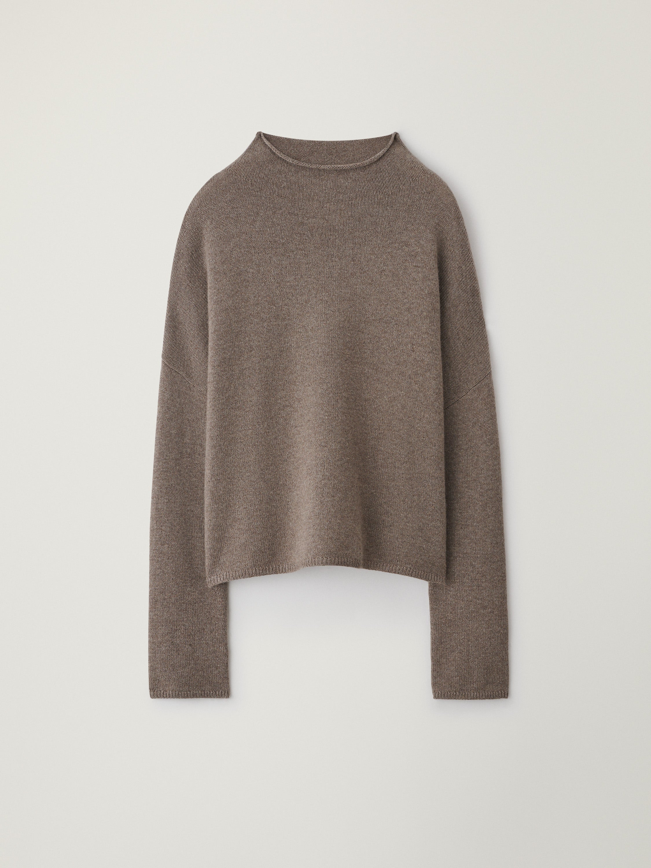 Sandy Sweater has a straight fit with dropped shoulders and a raw hem mock neck. The relaxed silhouette is knitted in our middleweight cashmere, falling effortlessly against your skin.