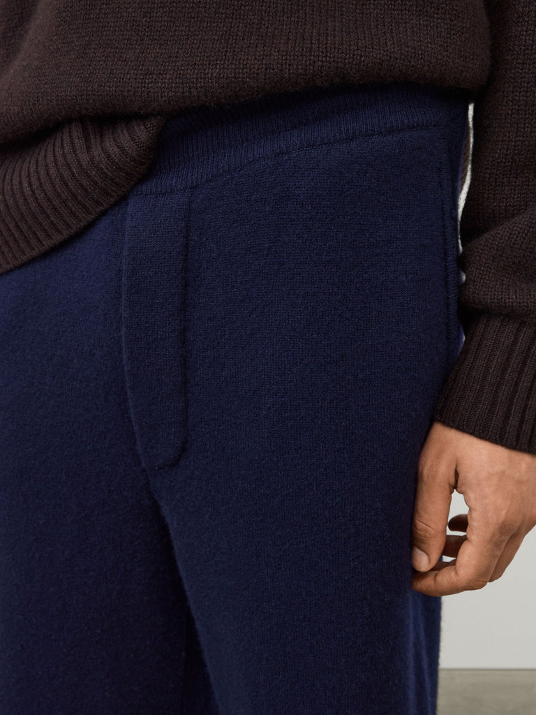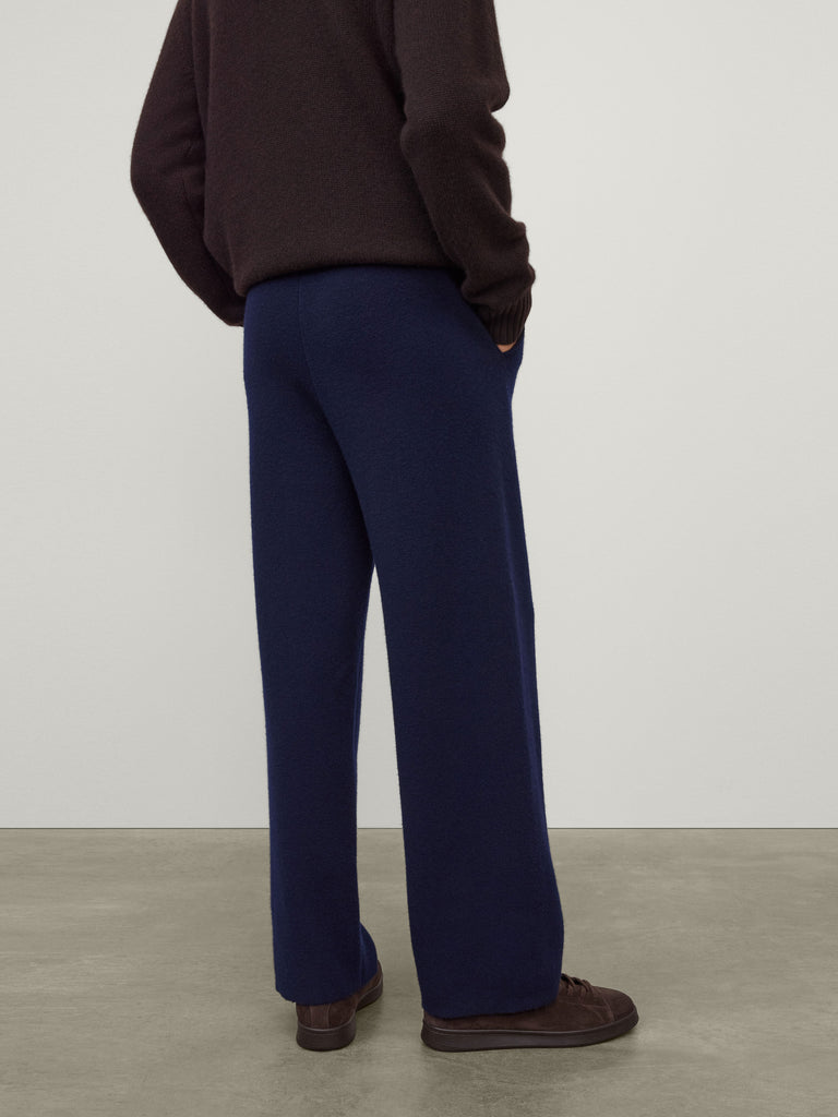 A tailoring-inspired trouser, the Parker trousers are knitted in our signature double face cashmere for shape and structure. The regular fit, relaxed silhouette features an elasticated waistband secured with a concealed drawstring, a mock fly, side pockets and full-length legs.
