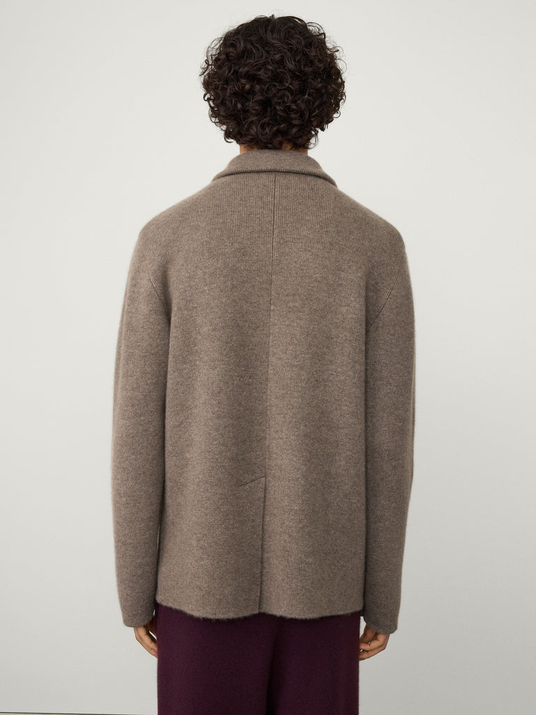 A cardigan that doubles as a jacket, the Louis cardigan jacket is crafted in our robust double face cashmere. The regular fit silhouette is detailed with a sturdy shirt collar, dropped shoulders, full-length sleeves, a front button closure, front patch pockets, and finished with a back seam detail and vent.