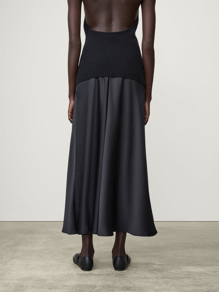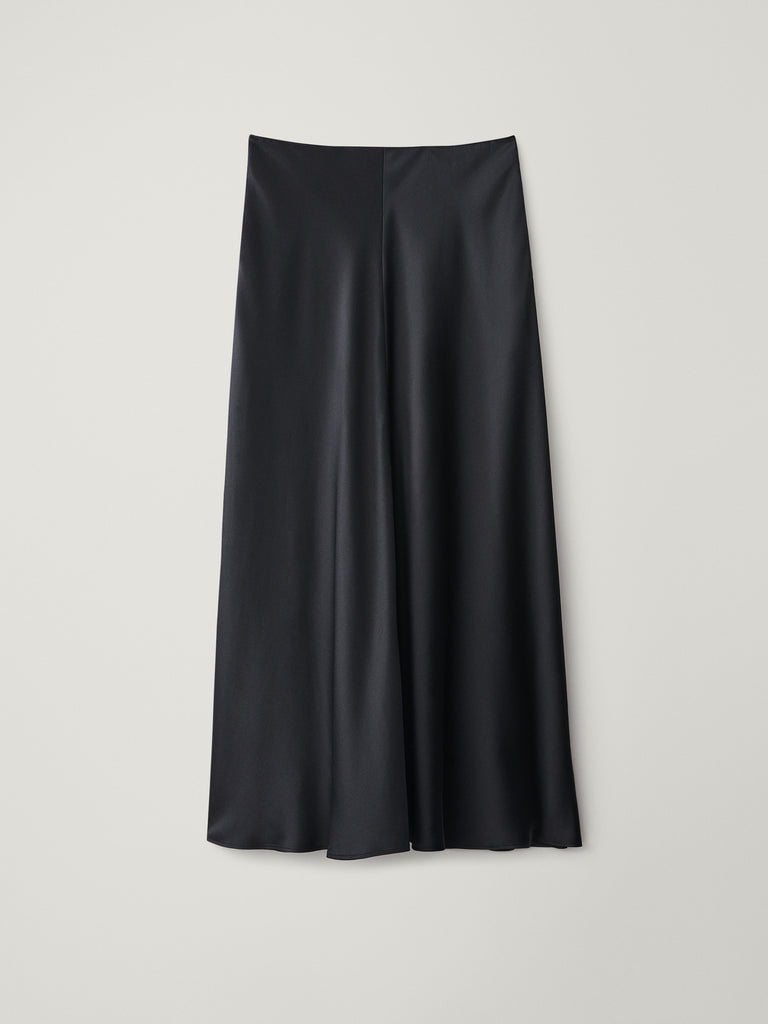 A skirt with longline proportions, the full maxi skirt is crafted in our heavy silk satin fabric with a shiny finish. The regular fit, flared silhouette has a high waist, side pockets and a concealed back zip. Wear it with silk or cashmere pieces from across the collection.