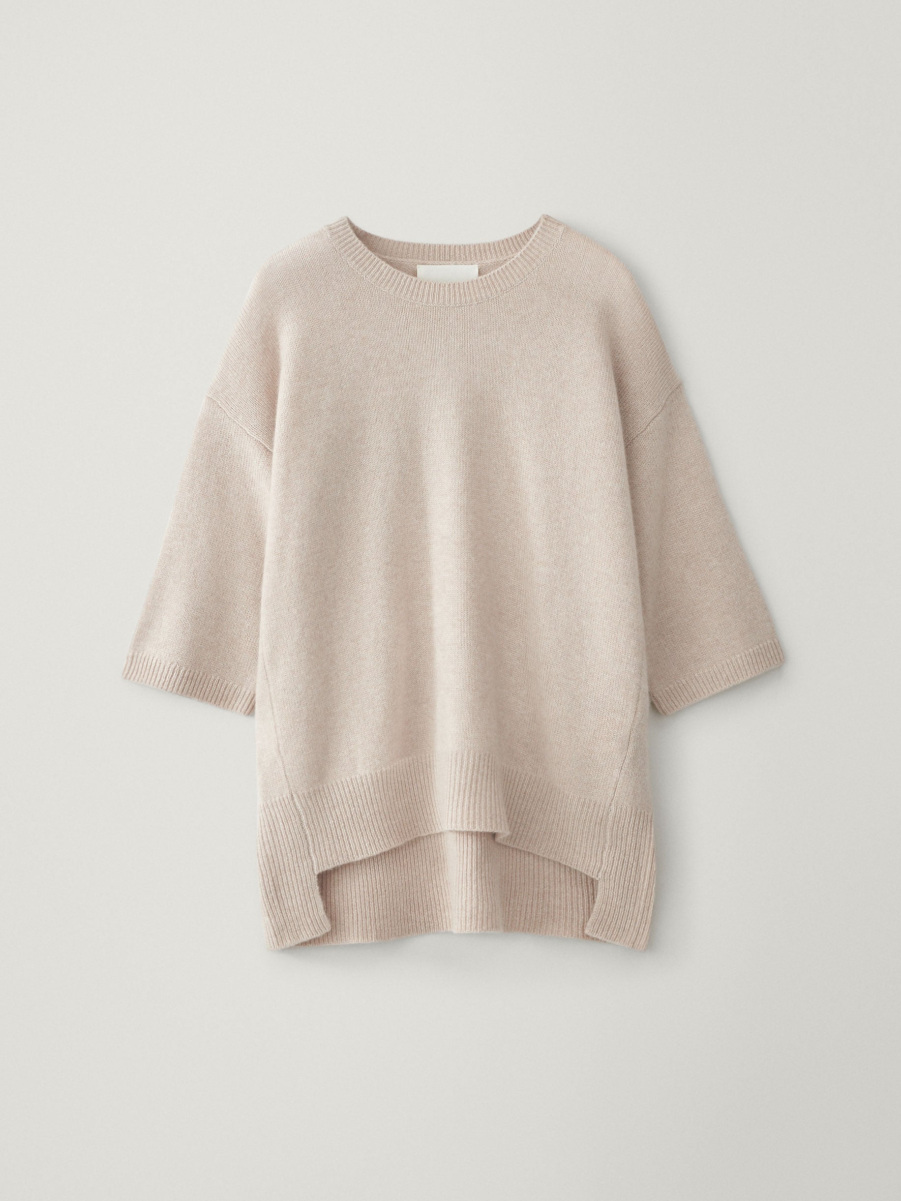 A feminine crewneck, the Camille sweater is crafted in plush, heavy knit cashmere that feels rich to the touch. The relaxed silhouette is framed by a round neck, dropped shoulders and three-quarter length sleeves, complete with a graphic step hemline which is longer at the back.