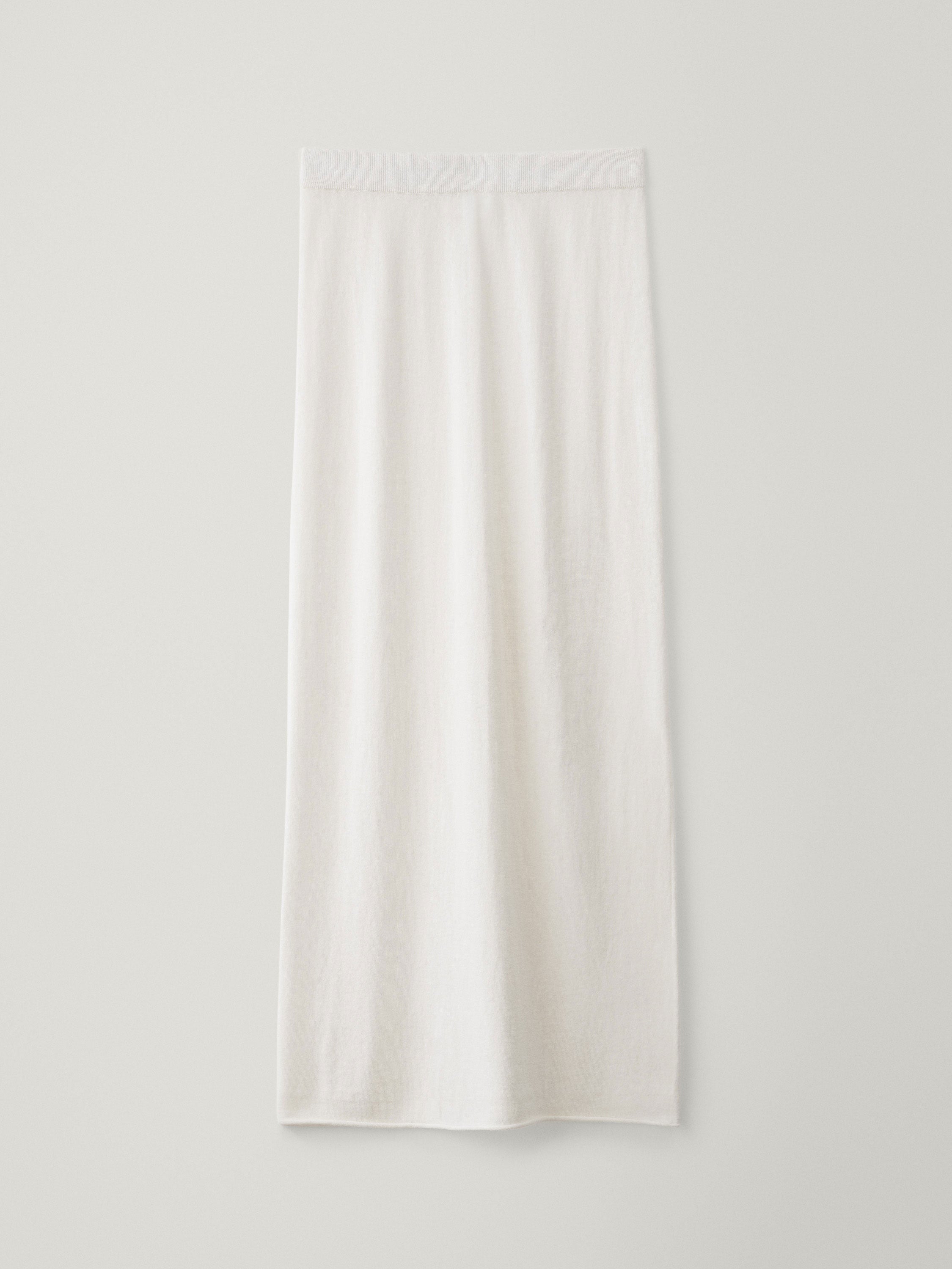 An effortless pull-on staple, the Charlotta skirt is crafted in our jersey-like fine knit cashmere fabric blended with cotton. The regular fit, straight silhouette sits comfortably at the waist with an elasticated waistband and falls into a lightweight maxi skirt finished with rolled hems for an undone touch.