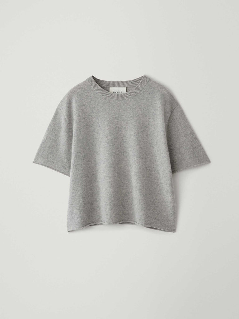 An everyday layering piece, the Cila T-shirt is crafted in soft, mid-weight cashmere for year-round wear. The slightly wide and cropped silhouette is framed by a crew neck, dropped shoulders and short sleeves, with a rolled hemline which crops at the hip.