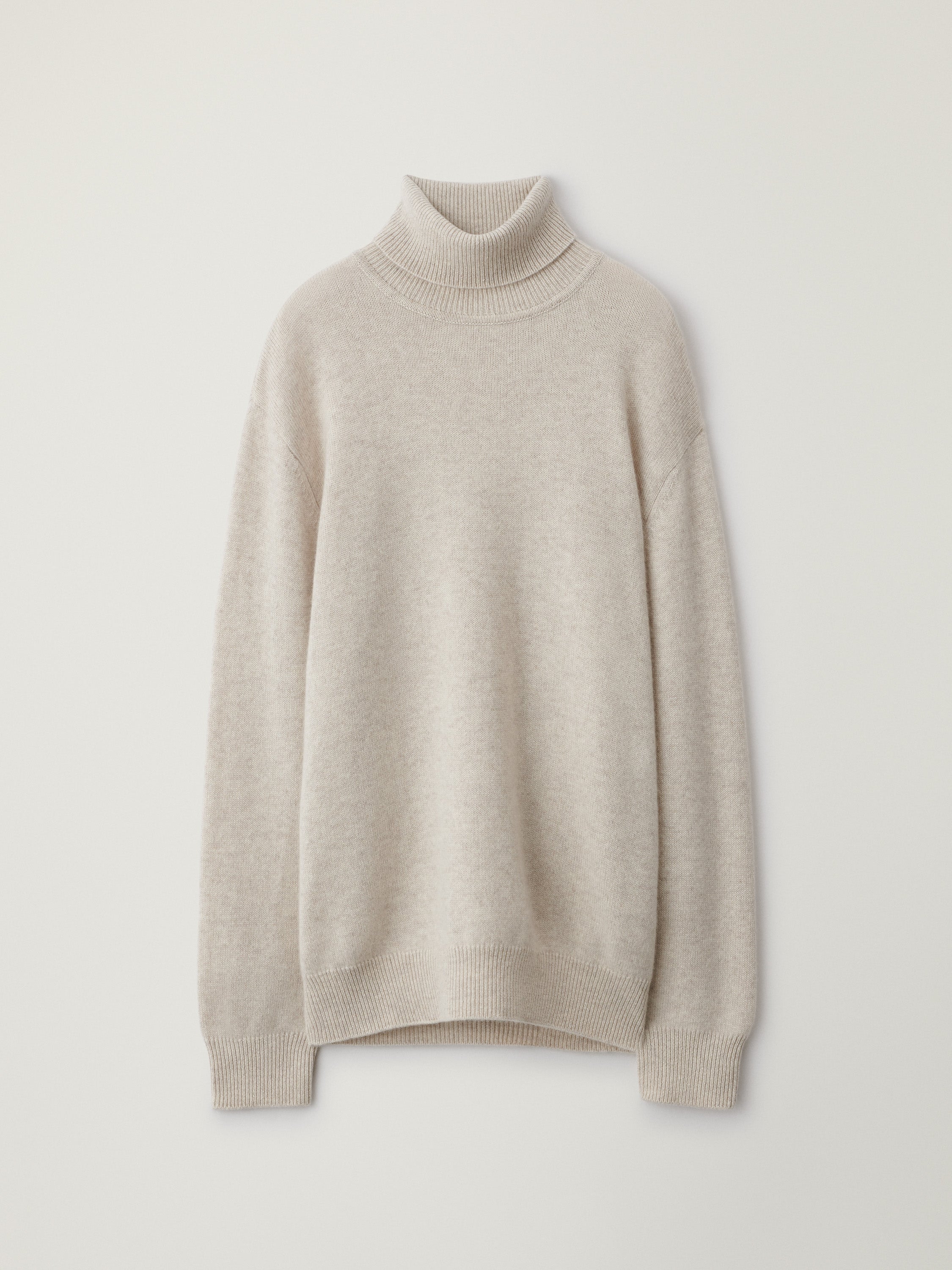 A relaxed turtleneck, the Faron sweater is knitted in soft, seasonless mid-weight cashmere. The regular fit silhouette falls from a comforting turtleneck to gently dropped shoulders, full-length sleeves and a ribbed hem.