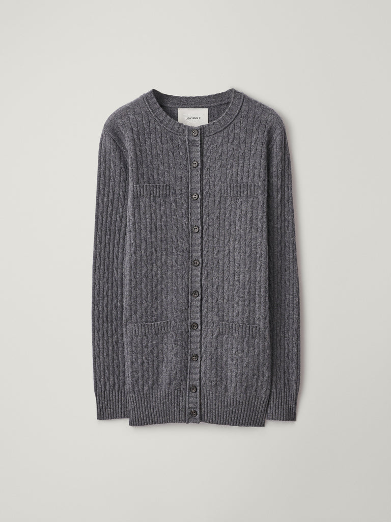 A feminine cable knit, the Inda cardigan is crafted in mid-weight cashmere with a graphic cable pattern. The regular fit, longline silhouette features a round neck, a button-down fastening and full-length sleeves, with 4 faux welt pockets and inside-out seam details animating the look.