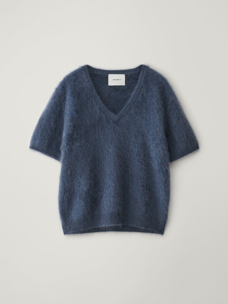 A brushed cashmere sweater, the Lovisa T-shirt is cloud-like in texture with a light and lofty feel. The regular fit silhouette is framed by a v-neck, short sleeves and a straight hem, neatly finished with ribbed edges.