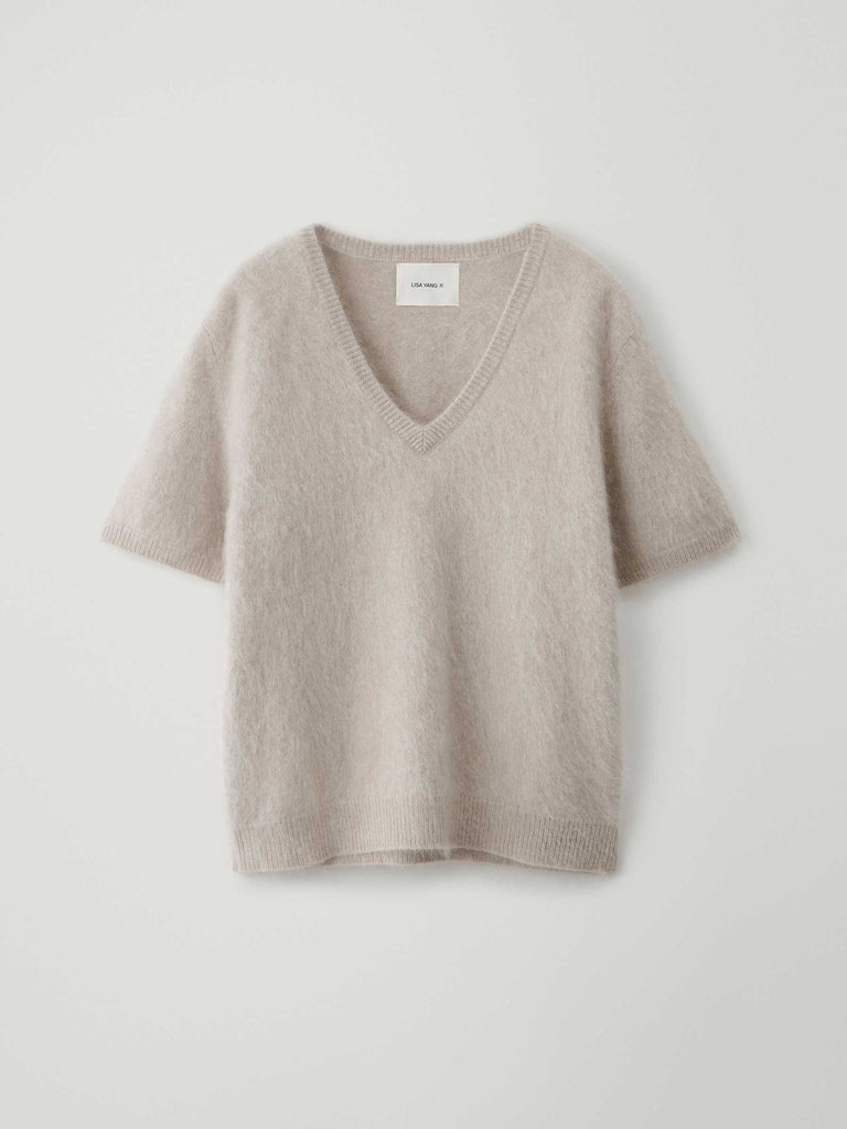 A brushed cashmere sweater, the Lovisa T-shirt is cloud-like in texture with a light and lofty feel. The regular fit silhouette is framed by a v-neck, short sleeves and a straight hem, neatly finished with ribbed edges.