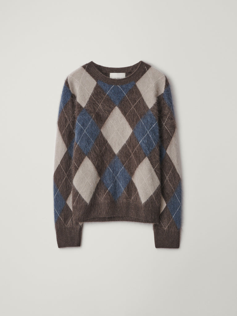 A modern heritage piece, the Margy sweater is crafted in our signature brushed cashmere with a graphic Argyle pattern. The regular fit silhouette features a crew neck and full-length sleeves.