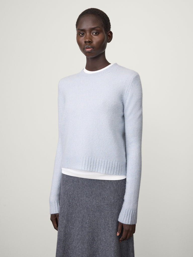 A summer go-to, the Mira sweater is knitted in textured silk cashmere with a light and lofty hand feel. The regular fit, cropped silhouette is framed by a neat crew neck, full-length sleeves and ribbed trims throughout.